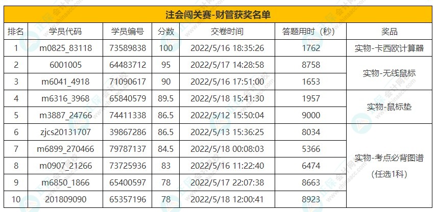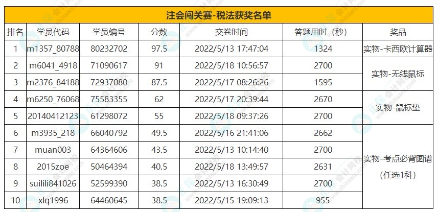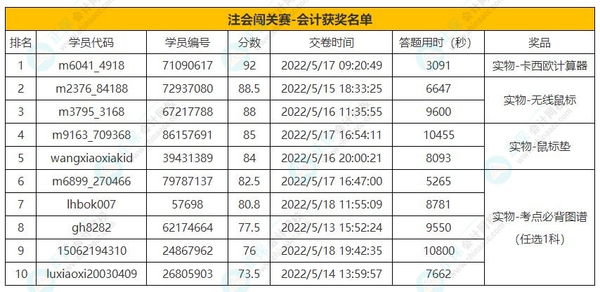 关于注册会计师答题闯关赛的获奖说明: