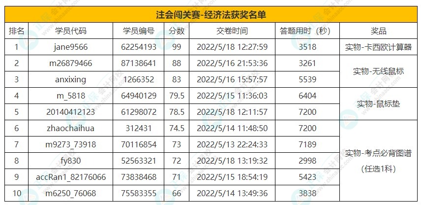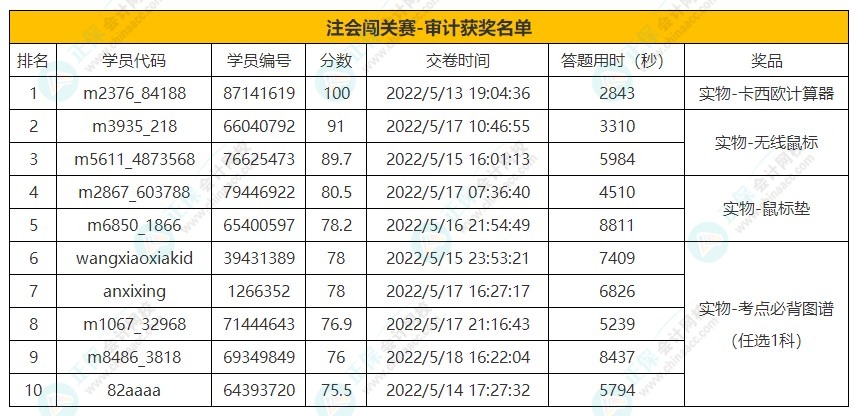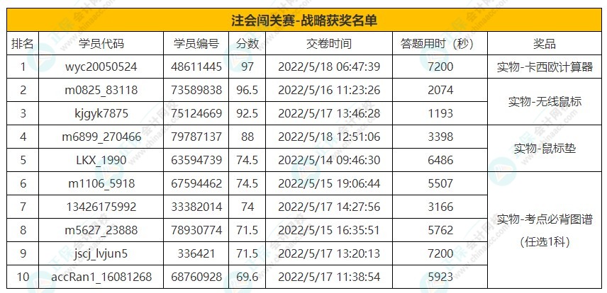 2022年注会答题闯关赛圆满收官!已有不少同学获得了电子版考点必背图谱、正保币、电子书、实务课程,那最终大奖将花落谁家?速速来查看吧↓↓↓