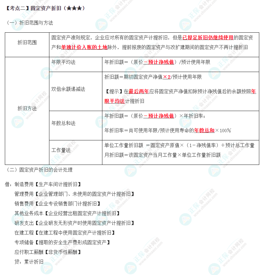 高频考点 | 固定资产的初始计量、固定资产折旧、固定资产的后续支出 |