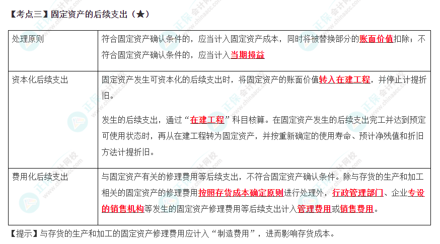 高频考点 | 固定资产的初始计量、固定资产折旧、固定资产的后续支出 |