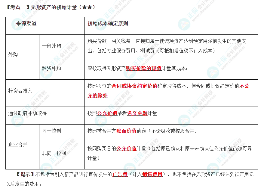 高频考点 | 无形资产的初始计量、内部研究开发支出的处理、土地使用权的处理、无形资产的后续计量 |