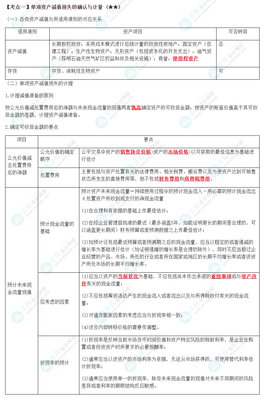 单项资产减值损失的确认与计量;资产组及商誉减值的测试 |