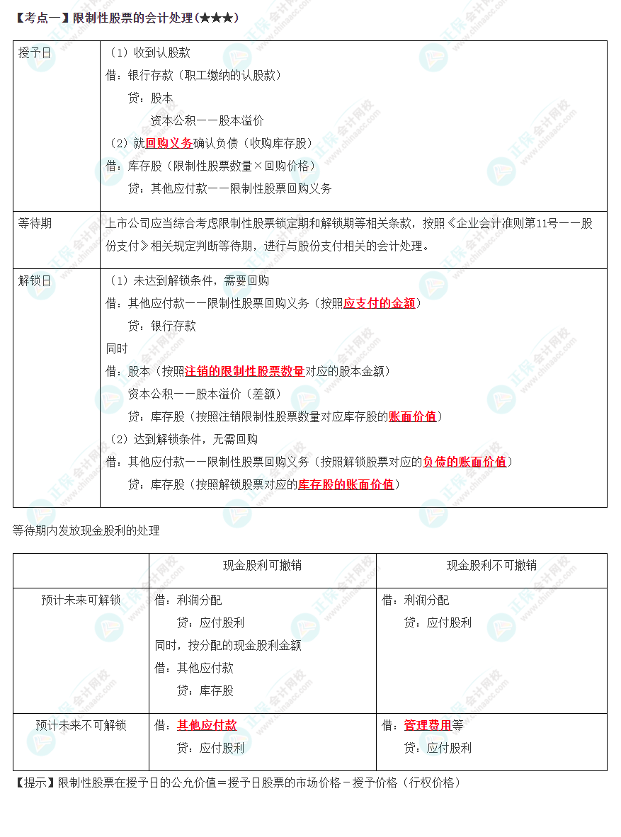 2022年注会《会计》第十章高频考点1:限制性股票的会计处理
