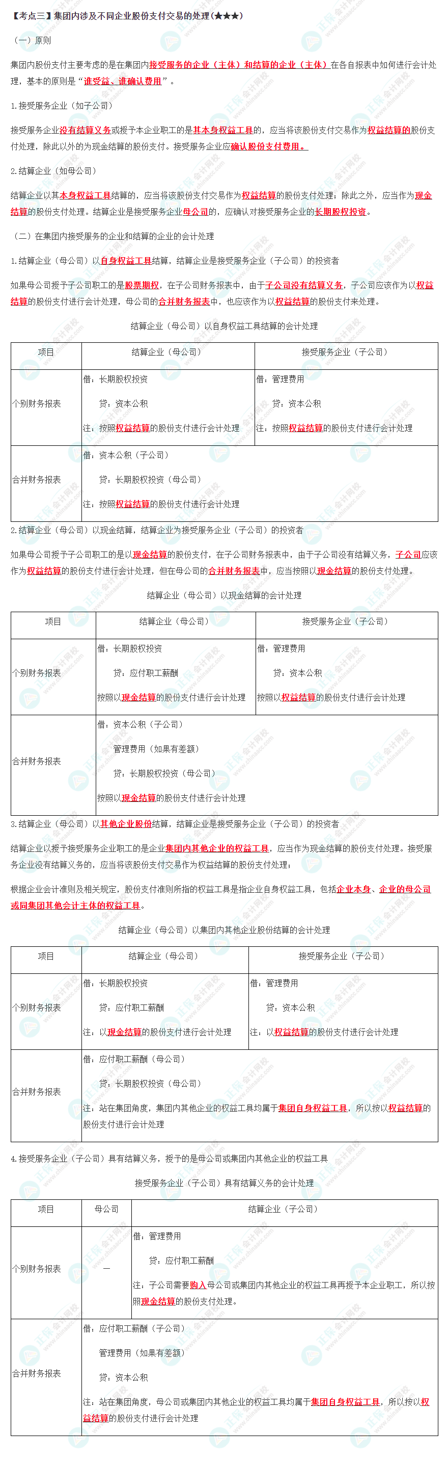 高频考点 | 限制性股票的会计处理、现金结算的股份支付的会计处理、集团内涉及不同企业股份支付交易的处理 |