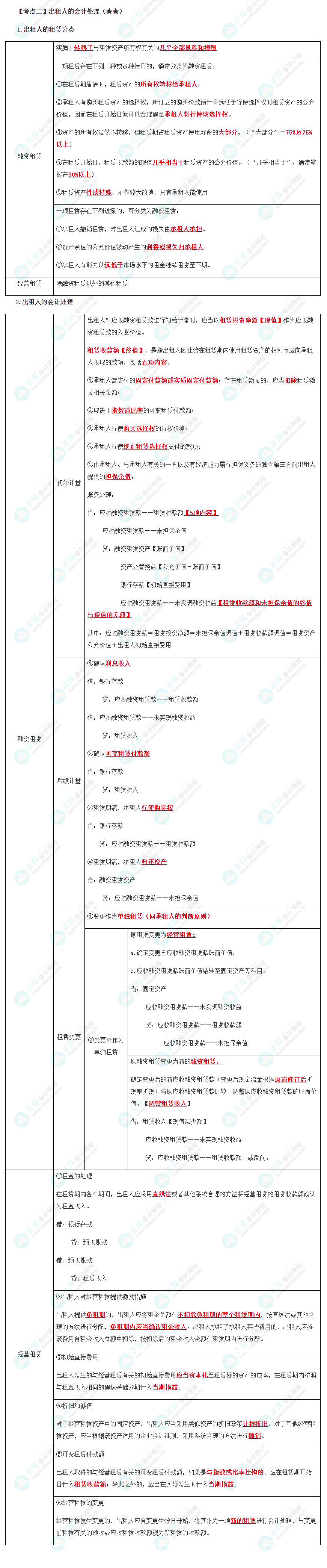 2022年注会《会计》第十四章高频考点3:出租人的会计处理