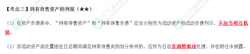 2022年注会《会计》第十五章高频考点3:持有待售资产的列报