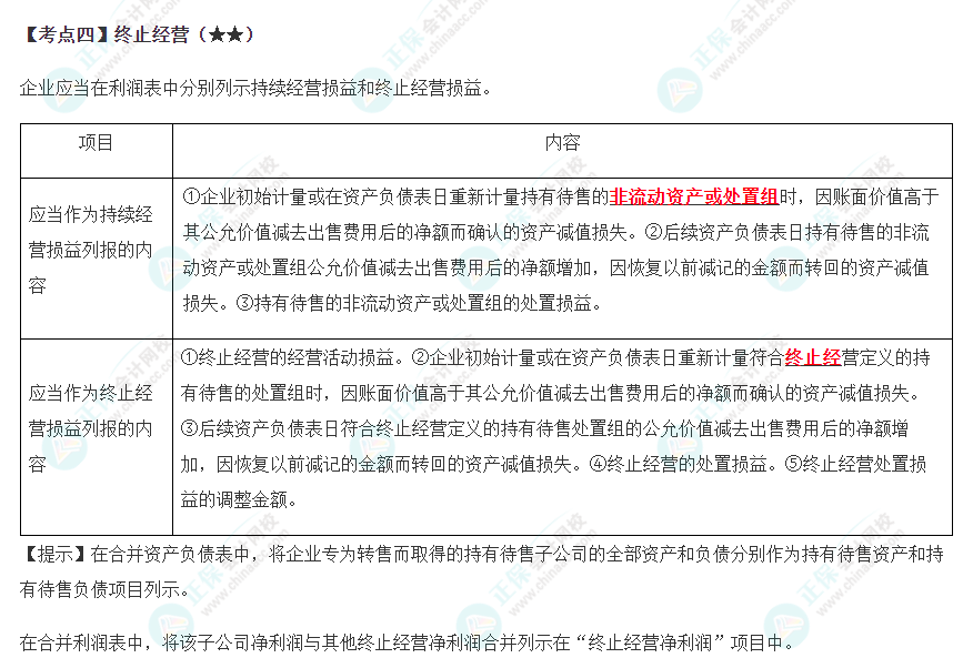 持有待售类别的分类、持有待售类别的账务处理、持有待售资产的列报、终止经营 |