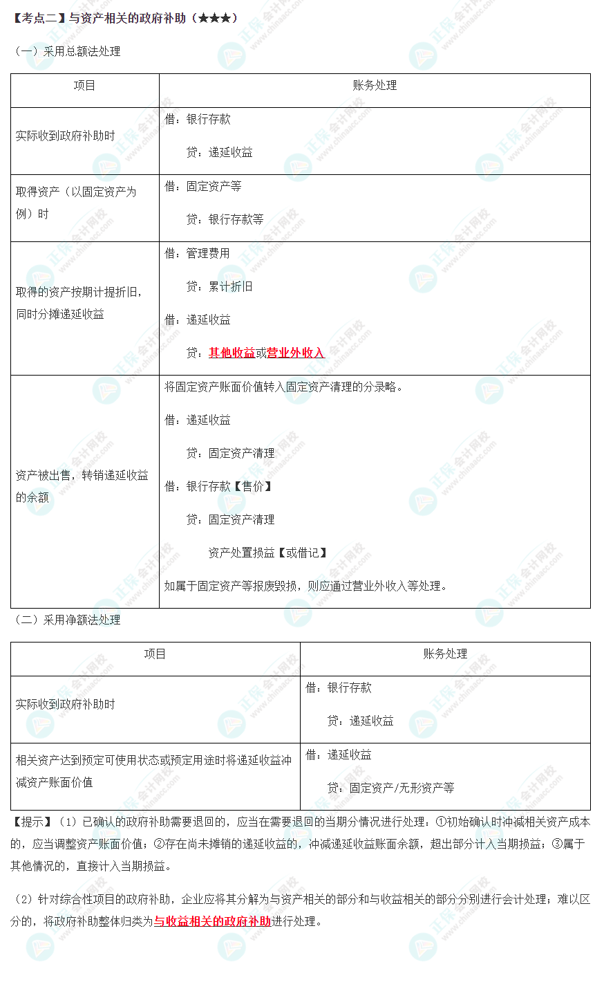 2022年注会《会计》第十八章高频考点2:与资产相关的政府补助