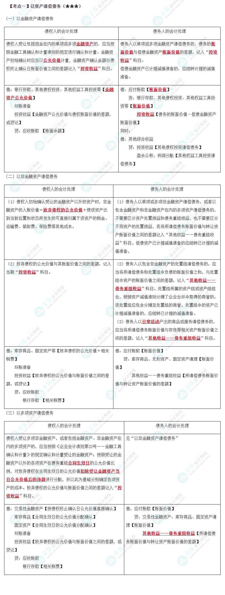 高频考点 | 以资产清偿债务、以组合方式进行债务重组 |