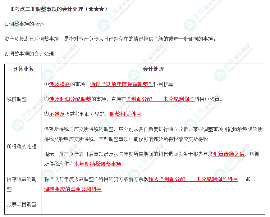 高频考点 | 日后事项的分类、调整事项的会计处理、非调整事项的会计处理 |