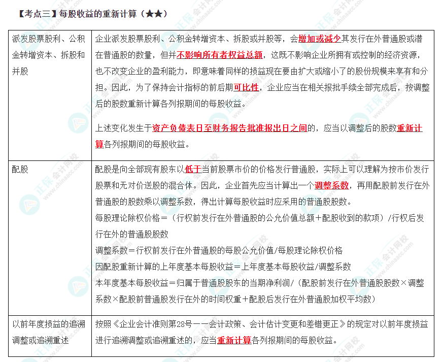 2022年注会《会计》第二十八章高频考点3:每股收益的重新计算