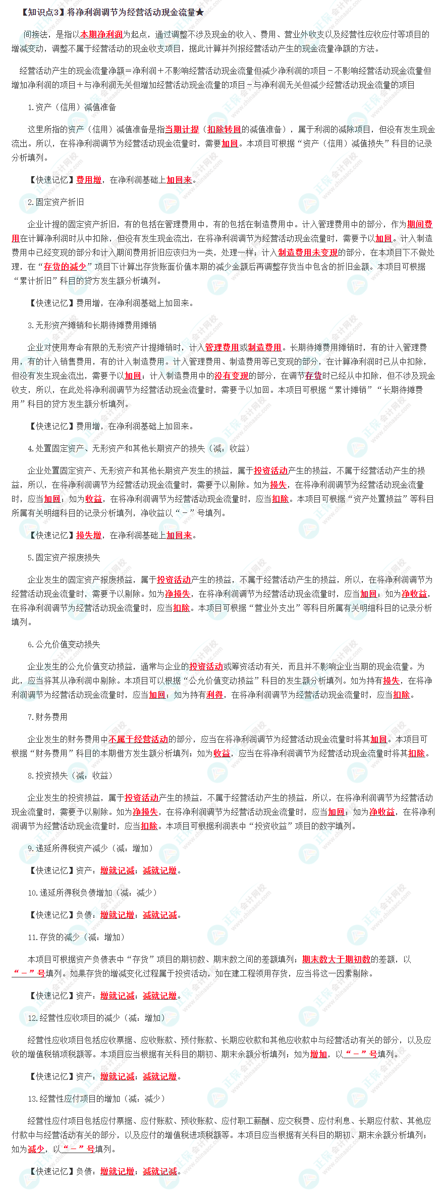 2022年注册会计师《会计》考试内容涉及范围较广,涉及考点较多,能用巧妙的方法记住复杂的知识点,对我们高效备考注会很有帮助,以下为知识点《将净利润调节为经营活动现金流量》的知识点内容及速记口诀,小伙伴们速看!