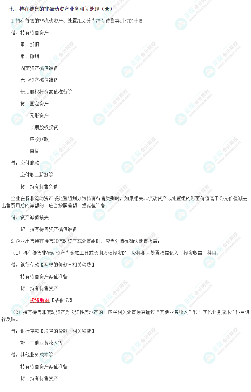 2022年注会《会计》分录大全:持有待售的非流动资产业务相关处理