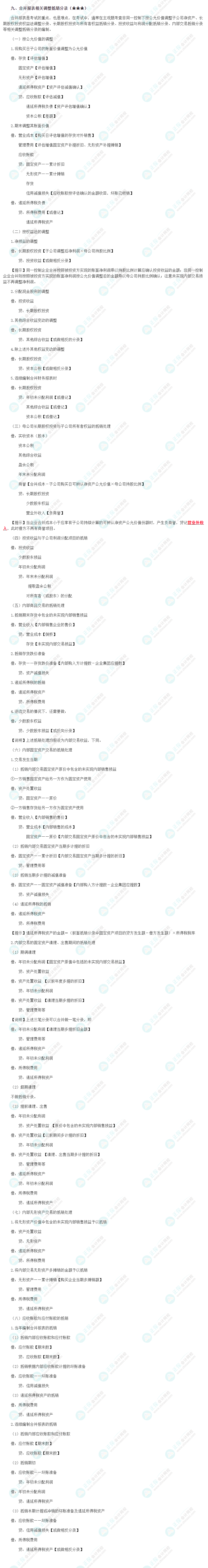 2022年注会《会计》分录大全:合并报表相关调整抵销分录