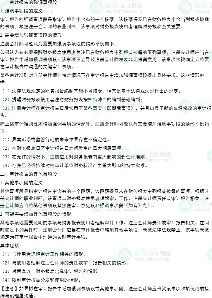 预习考点 | 在审计报告中沟通关键审计事项、确定非无保留意见的类型、强调事项段与其他事项段 |