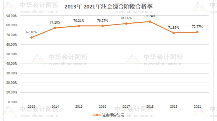 我们再来看下2013年-2021年注会综合阶段的合格率,具体内容如下图所示: