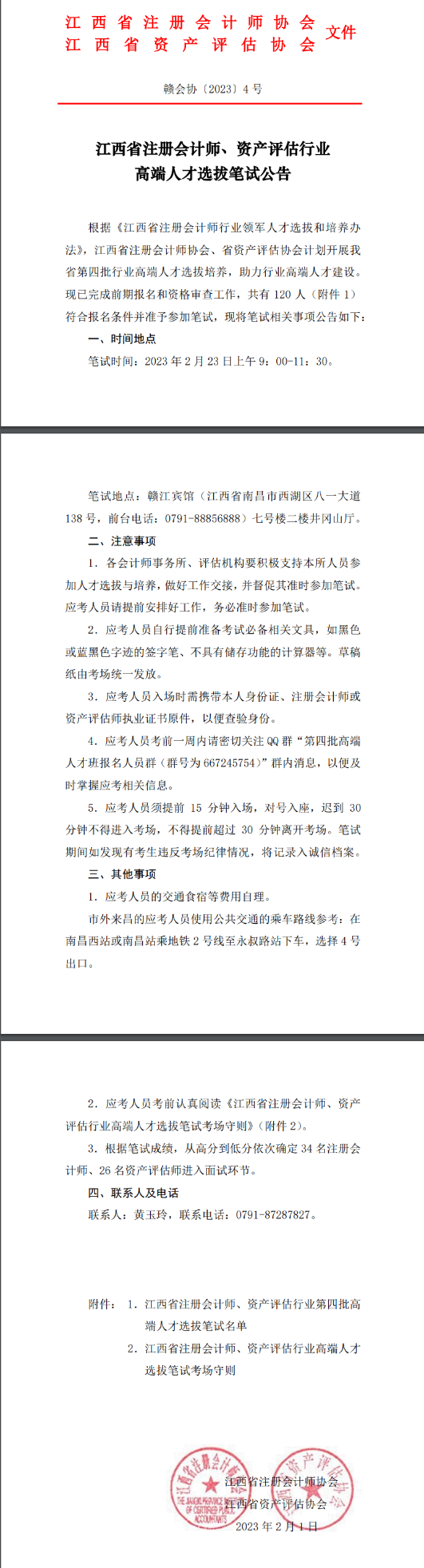 江西省注册会计师、资产评估行业高端人才选拔笔试公告