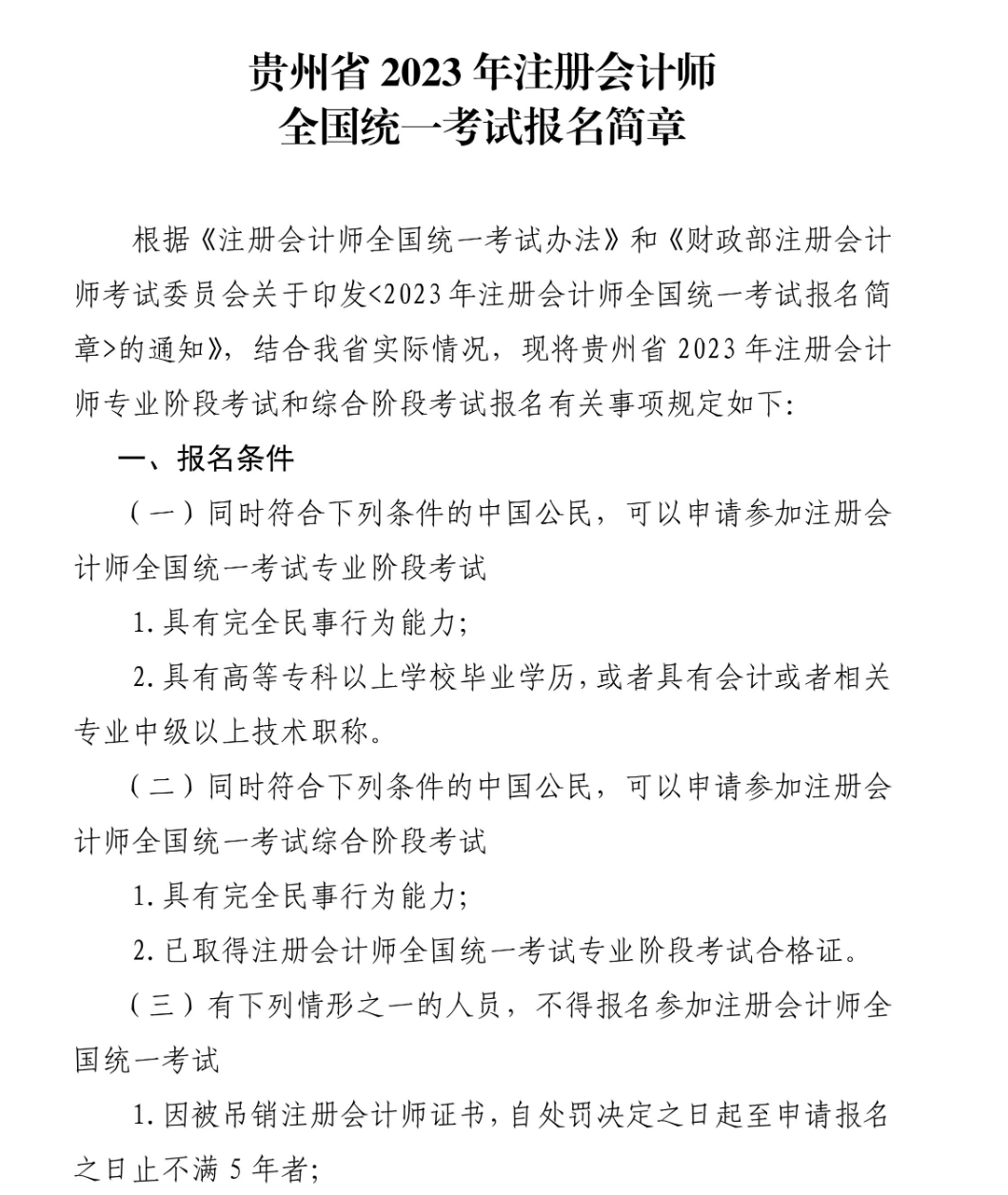 贵州省2023年注册会计师全国统一考试报名简章公布啦,准备参加2023年注册会计师全国统一考试的小伙伴们快来看一看!