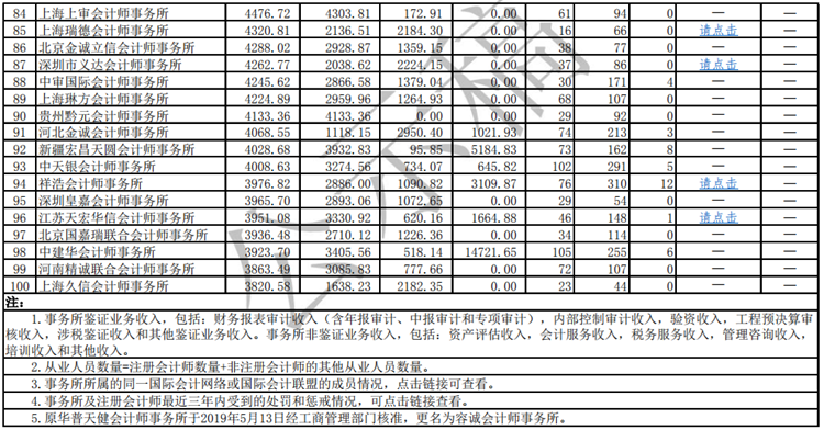 第四条 列入信息发布范围的为上年度业务收入排名前100 家事务所(以下简称前 100 家事务所),并按事务所业务