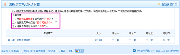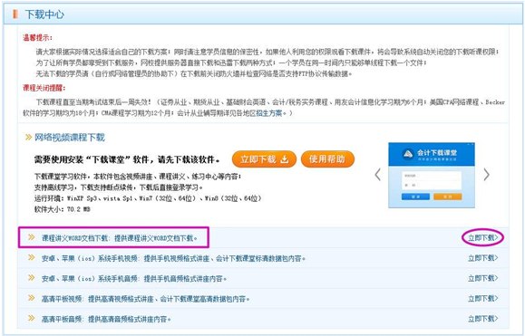 ■进入下载中心后,可以看到下部有课程讲义word文档下载,点击立即下载即可进入下载页面。