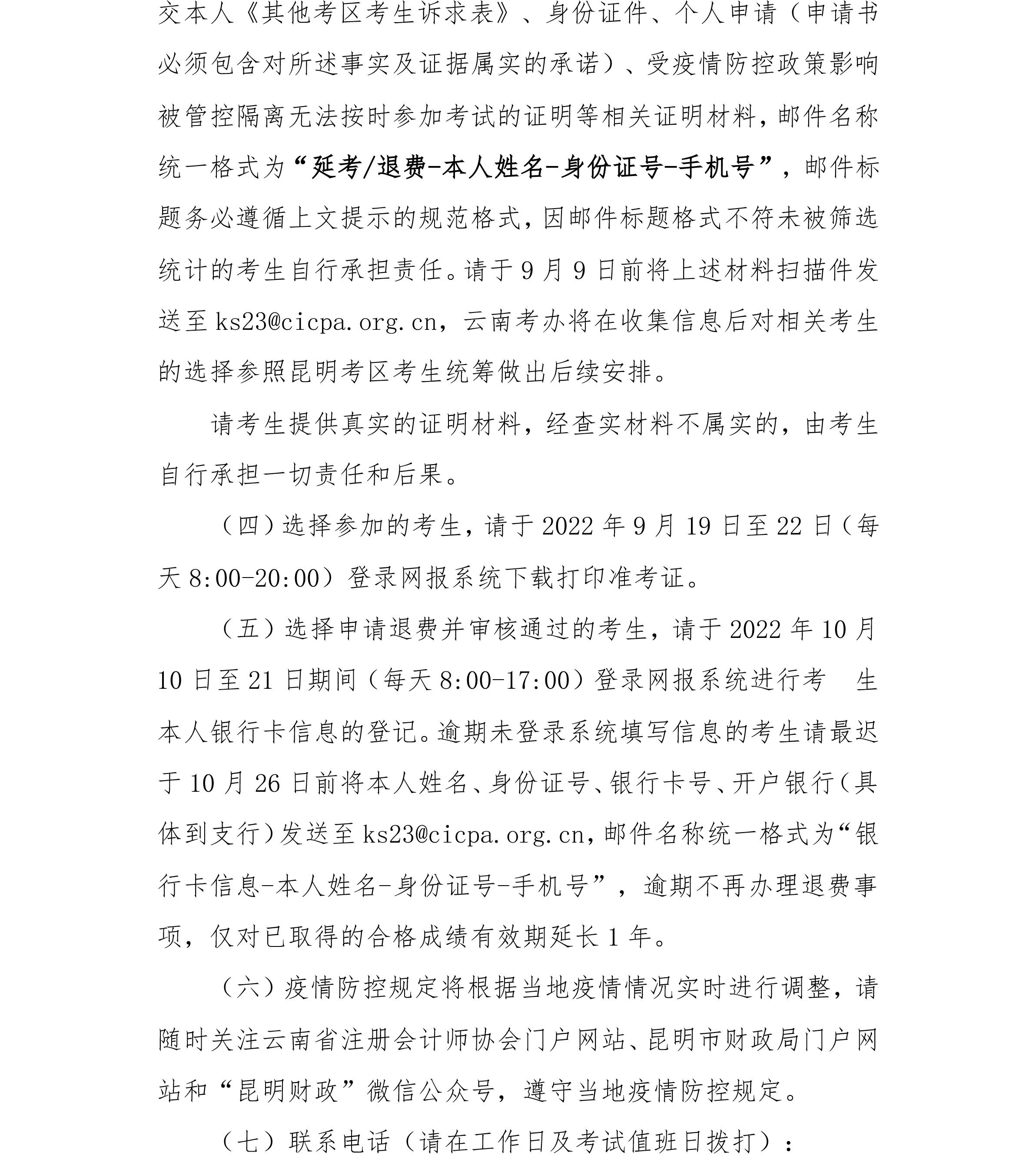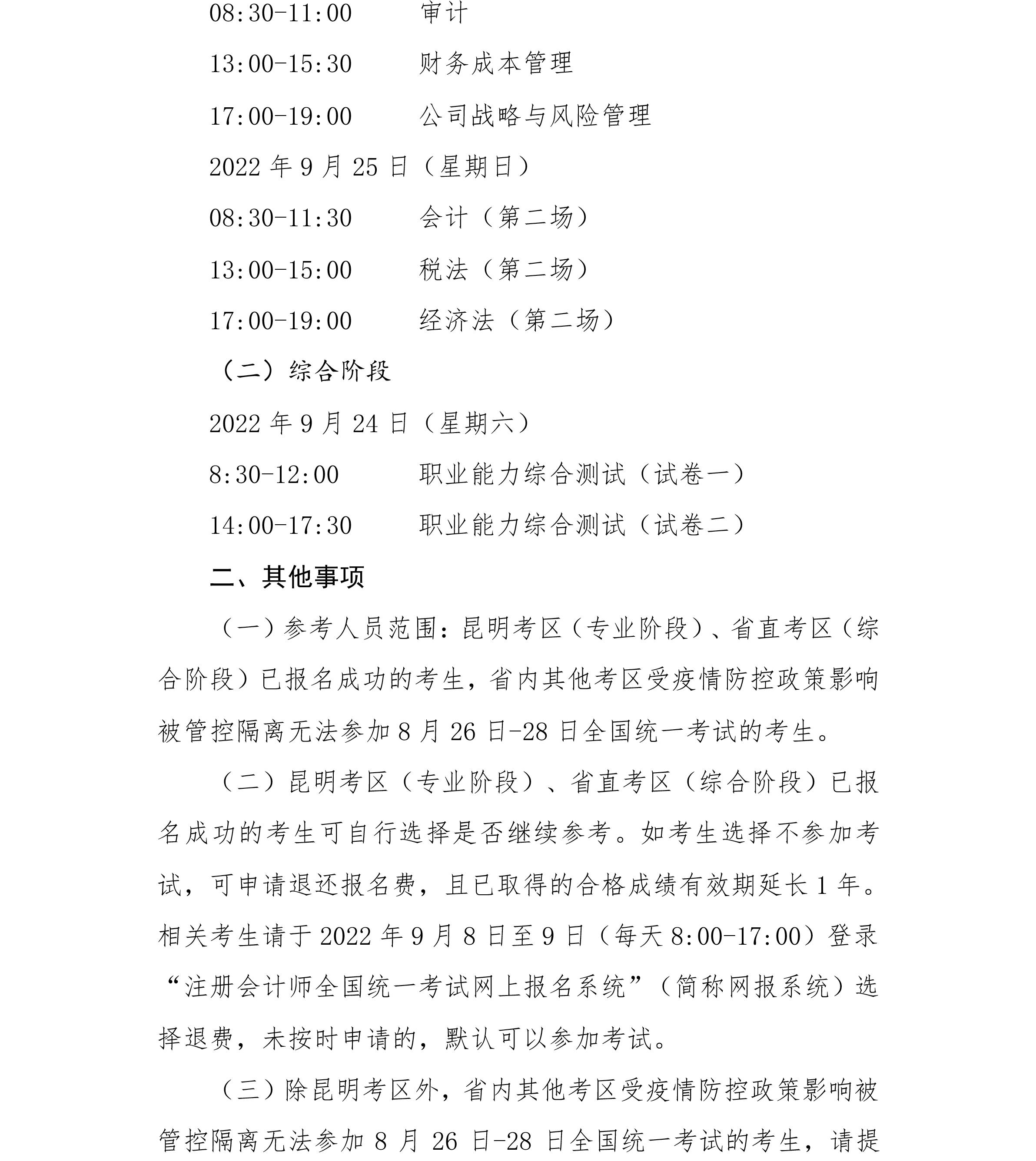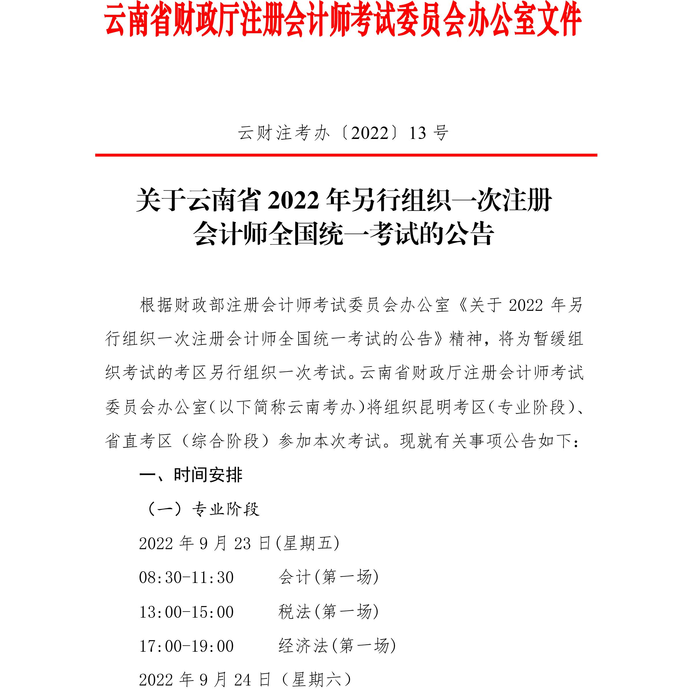 关于云南省2022年另行组织一次注册会计师全国统一考试的公告.