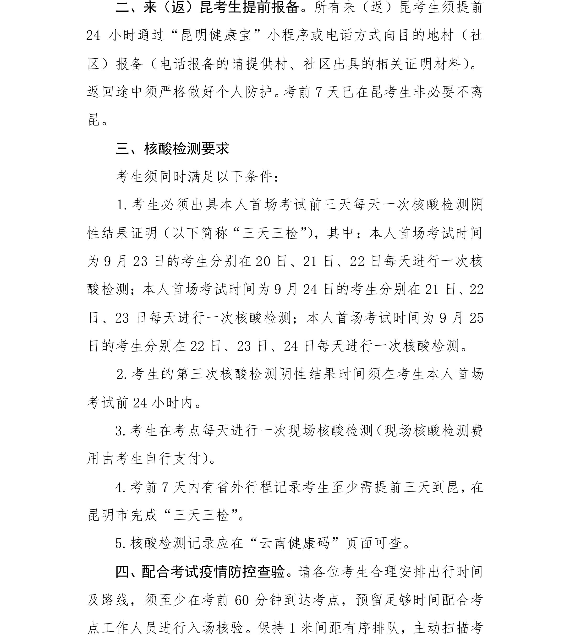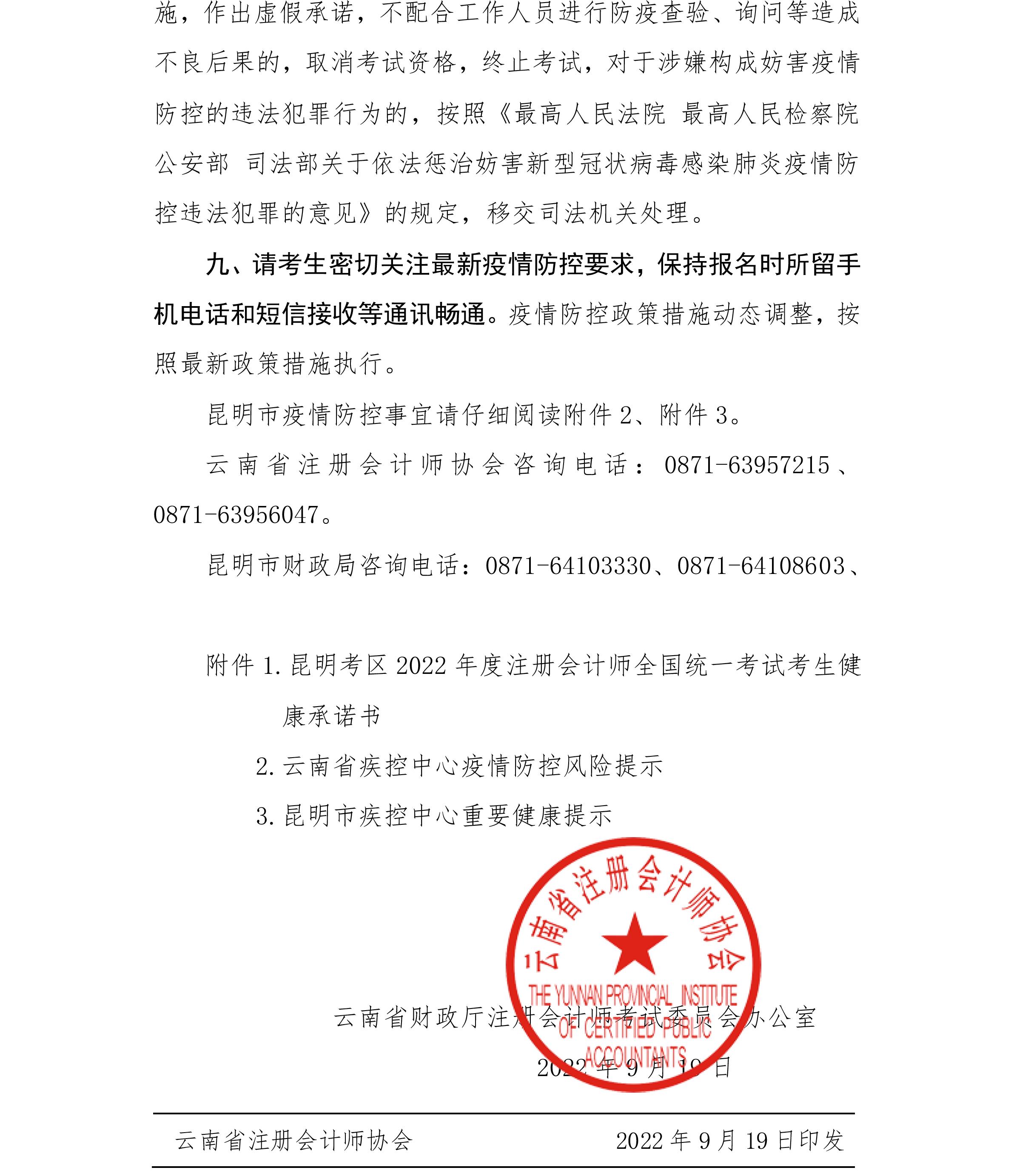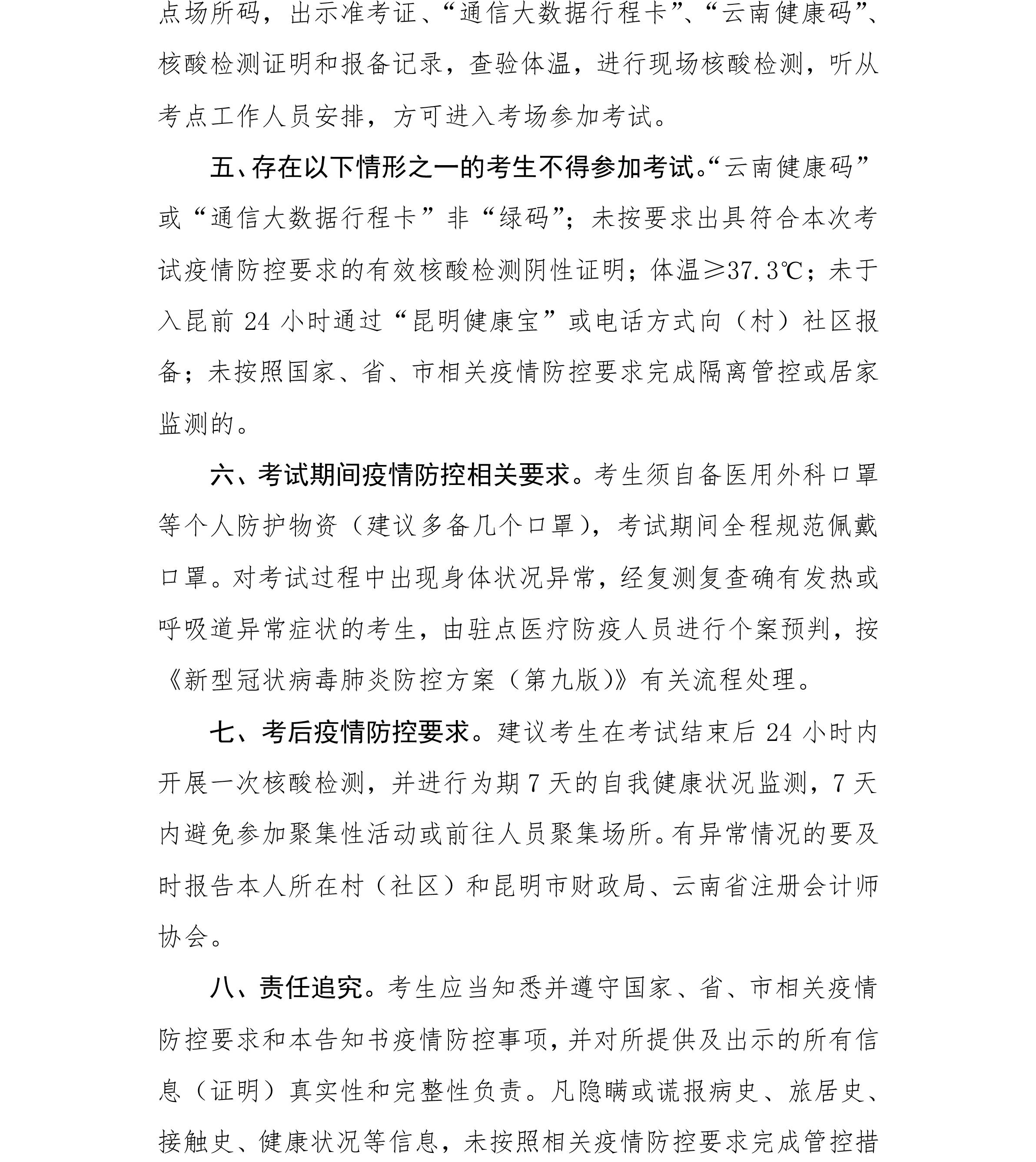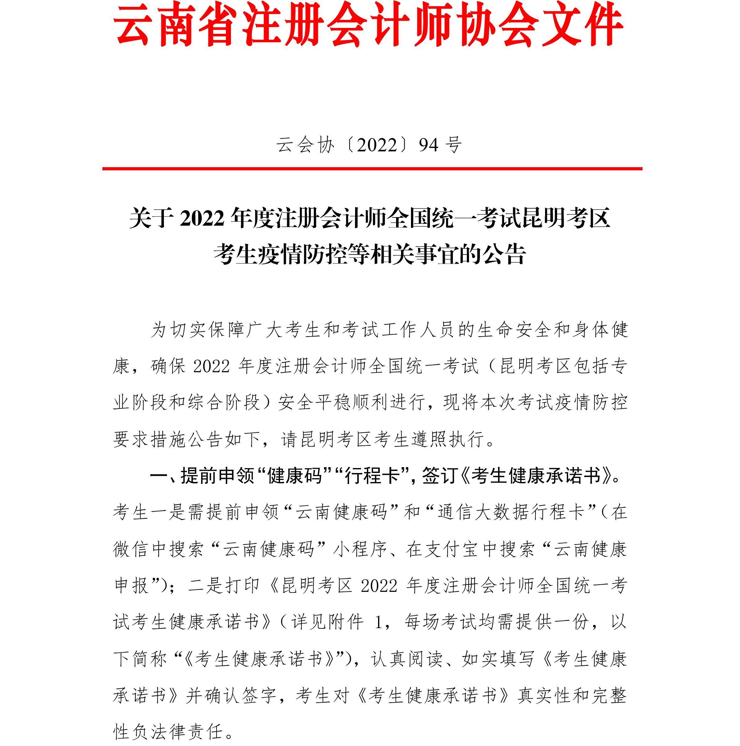 关于2022年度注册会计师全国统一考试昆明考区考生疫情防控等相关事宜的公告