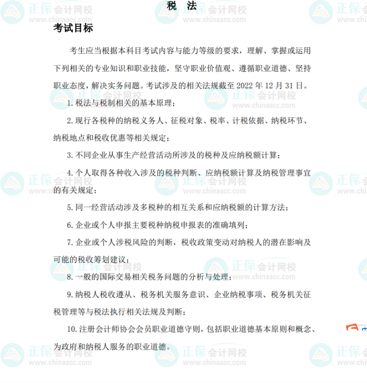 2023年注会《税法》考试大纲