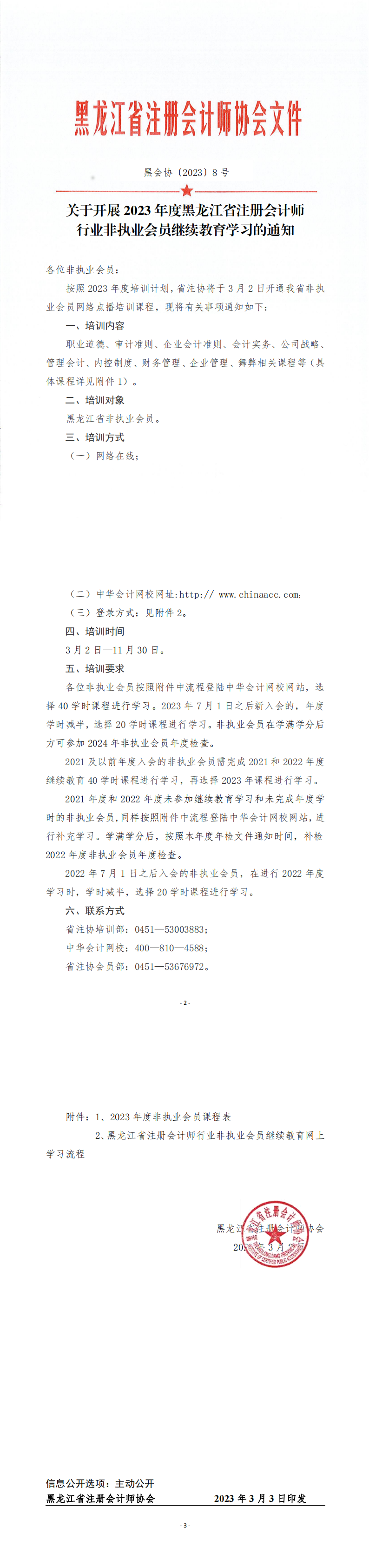 黑龙江省注协会计师协会发布关于开展2023年度黑龙江省注册会计师行业非执业会员继续教育学习的通知,具体内容如下: