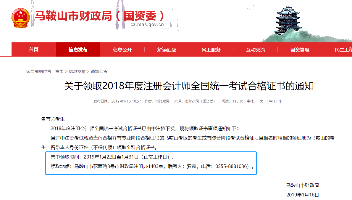 刚刚安徽省注册会计师协会已经公布了2018年注册会计师合格证领取的相关事宜,详情如下:
