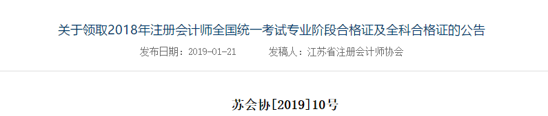 江苏省的朋友们注意啦!2018年注会合格证领取相关工作已经开始啦!快来看看详细信息。