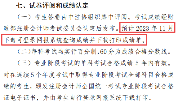 2023年注会成绩查询时间具体是几号还未通知,根据2023年注会报名简章可知:预计2023年11月下旬可登录网报系统查询成绩并下载打印成绩单。