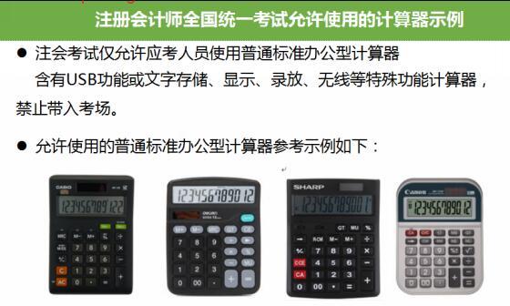三、根据《注册会计师全国统一考试应考人员考场守则》第四条,应考人员可以携带蓝色或黑色钢笔、圆珠笔,铅笔,直尺,不具有文字储存及显示、录放功能的普通标准办公型计算器(如图1),不得携带手机等通讯设备和电子设备、书籍、纸张、饮品以及其他与考试无关的物品进入考场座位。