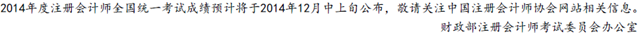 预计2014年注会综合阶段成绩查询时间为12月中上旬,请考生重点关注12月11日、18日。