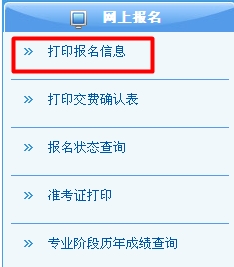 答:进入注册会计师全国统一考试网上报名系统(),登录用户名,点击左侧打印报名信息即可打印。