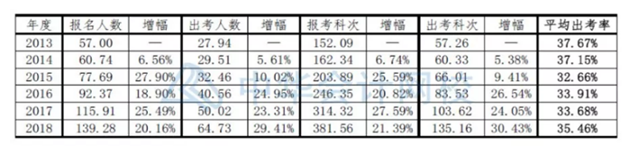 注册会计师报名人数从2013年到2018年翻了一倍还多,注册会计师持证人的绝对数量上升,本来持证者是少数人 ,而现在竞争越来越激烈也是事实。