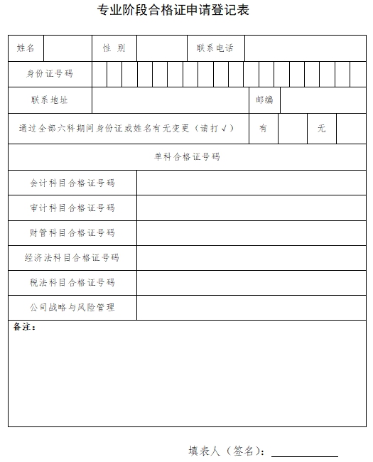 福建注协发布福建省注册会计师全国统一考试专业阶段合格证申请登记表,福建省小伙伴可以下载啦: