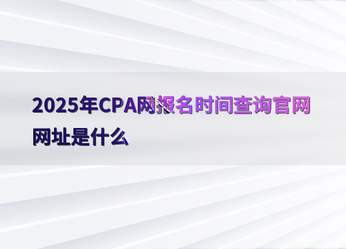 答:2025年CPA考试的报名时间为2025年4月8日早8:00至4月30日晚8:00。