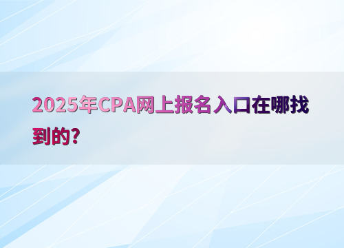 想要找到2025年CPA网上报名入口,您可以通过两种方式进入:一是访问注册会计师全国统一考试网上报名系统,网址为https://cpaexam.cicpa.org.cn;二是通过中国注册会计师协会官方微信公众号进行报名。