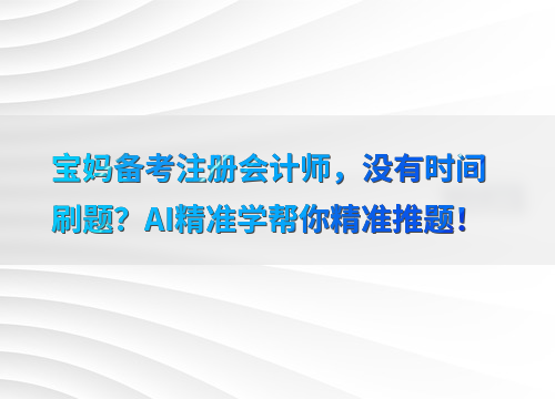 AI精准学帮你解决时间难题!宝妈备考注会,既要照顾家庭又要学习,时间总是不够用?别担心,正保会计网校的AI精准学功能可以帮你精准推题,让学习更高效。