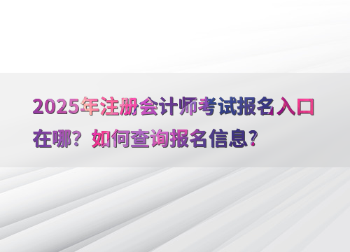 2025年注册会计师考试的报名入口有两个:注册会计师全国统一考试网上报名系统(https://cpaexam.cicpa.org.cn)以及中国注册会计师协会的官方微信公众号。
