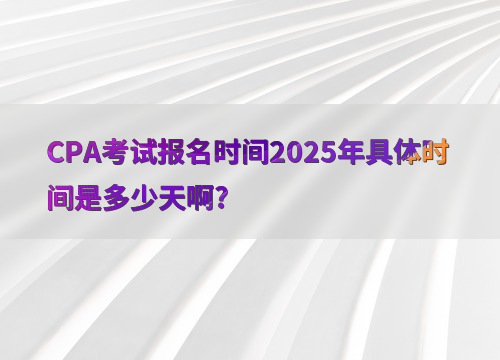 2025年注册会计师考试的报名时间从**2025年4月8日早8:00**开始,至**4月30日晚8:00**结束,持续**23天**。
