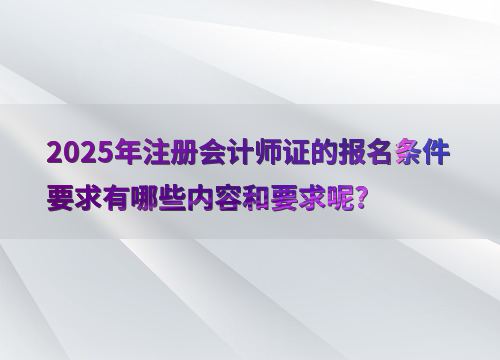 1、学历要求:2025年注册会计师考试要求考生具有高等专科以上学校毕业的学历,或者具备会计或相关专业中级以上技术职称。