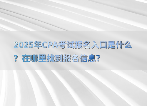 2025年注册会计师(CPA)考试的报名入口是注册会计师全国统一考试网上报名系统(https://cpaexam.cicpa.org.cn)。