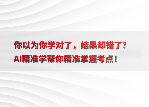 AI精准学结合两种智学体系:1、精准个性化智学体系,按个人基础推荐学习清单;2、高频考点智学体系,聚焦高频考点与薄弱点,推荐高效学习清单。