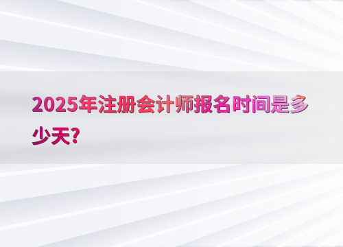 2025年注册会计师考试的报名时间从2025年4月8日早8:00开始,至4月30日晚8:00结束,持续**23天**。