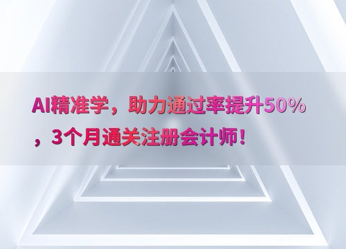 1、AI精准学的双套智学体系,既能推荐个性化学习清单,又能聚焦高频考点;2、通过量化任务和精准推题,有效提升学习效率;3、学习报告追踪效果,确保学习目标达成。这种科学的学习方法,让你在3个月内更有把握通过注会考试。