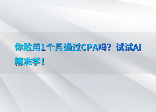 问:AI精准学能否保证一个月通过CPA?答:虽然不能保证绝对通过,但AI精准学能极大提升备考效率,助力你更高效地达成目标。