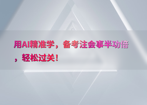 AI精准学通过两套体系助你备考无忧。一、精准个性化智学体系:根据个人基础和阶段性考核,推荐个性化学习清单;二、高频考点智学体系:结合历年高频考点和阶段考核结果,推荐高效学习清单和薄弱知识点清单。1、精准评估知识点;2、生成专属计划;3、动态调整任务;4、智能推题提升效率。
