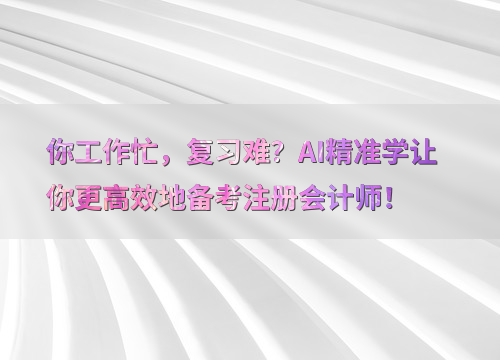 注册会计师考试内容繁杂,备考时间有限,如何高效复习成为关键?正保会计网校全新推出的AI精准学功能,通过智能化手段,帮助你科学规划学习路径,快速找到薄弱环节。