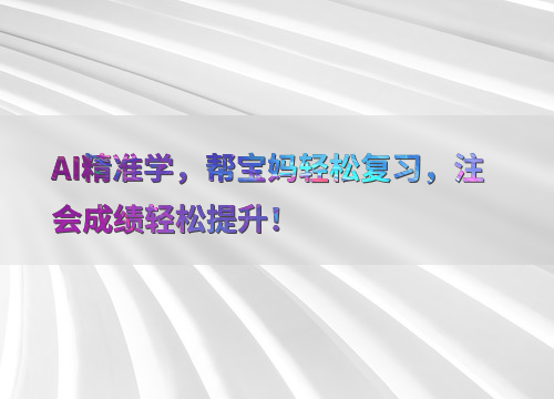 AI精准学通过智能测试精准推题,帮助宝妈高效掌握知识点。1、根据掌握度动态调整题目难度;2、提供章节测试与智能小测,全面覆盖考点;3、生成实时学习报告,动态调整学习任务。宝妈可以随时了解学习进展,确保复习效果。